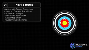 - Smooth Camera Transition: Experience fluid and natural camera movements as the component automatically adjusts the camera’s orientation to align with the detected target, providing a more immersive and engaging gameplay experience.