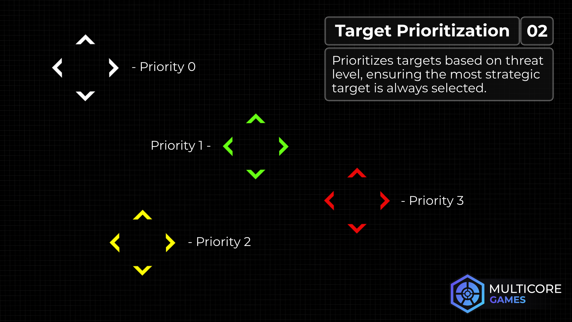 - Dynamic Target Prioritization: Implement a system that prioritizes targets based on threat level, ensuring the most strategic target is always selected.