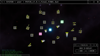 > You build and pilot your ship, connecting modules, weapons, and boosters, fighting through procedural waves of corrupted enemies born from failed updates.