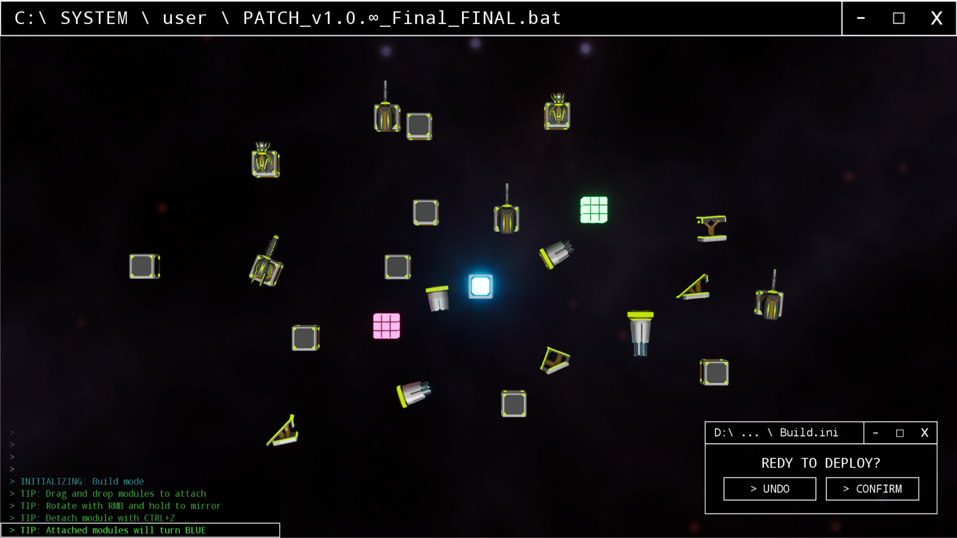 > In a corrupted digital space where every reboot promises “a better version,” you pilot a modular ship built from fragments of past iterations. > Each connection, weapon, and module is part of the broken code trying to repair itself.