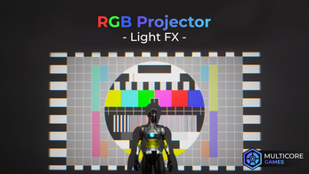 The RGB Light Projector FX is a flexible lighting and projection system that allows you to project static images, video textures, or custom media directly onto surfaces with realistic falloff, edge feathering, and color control.