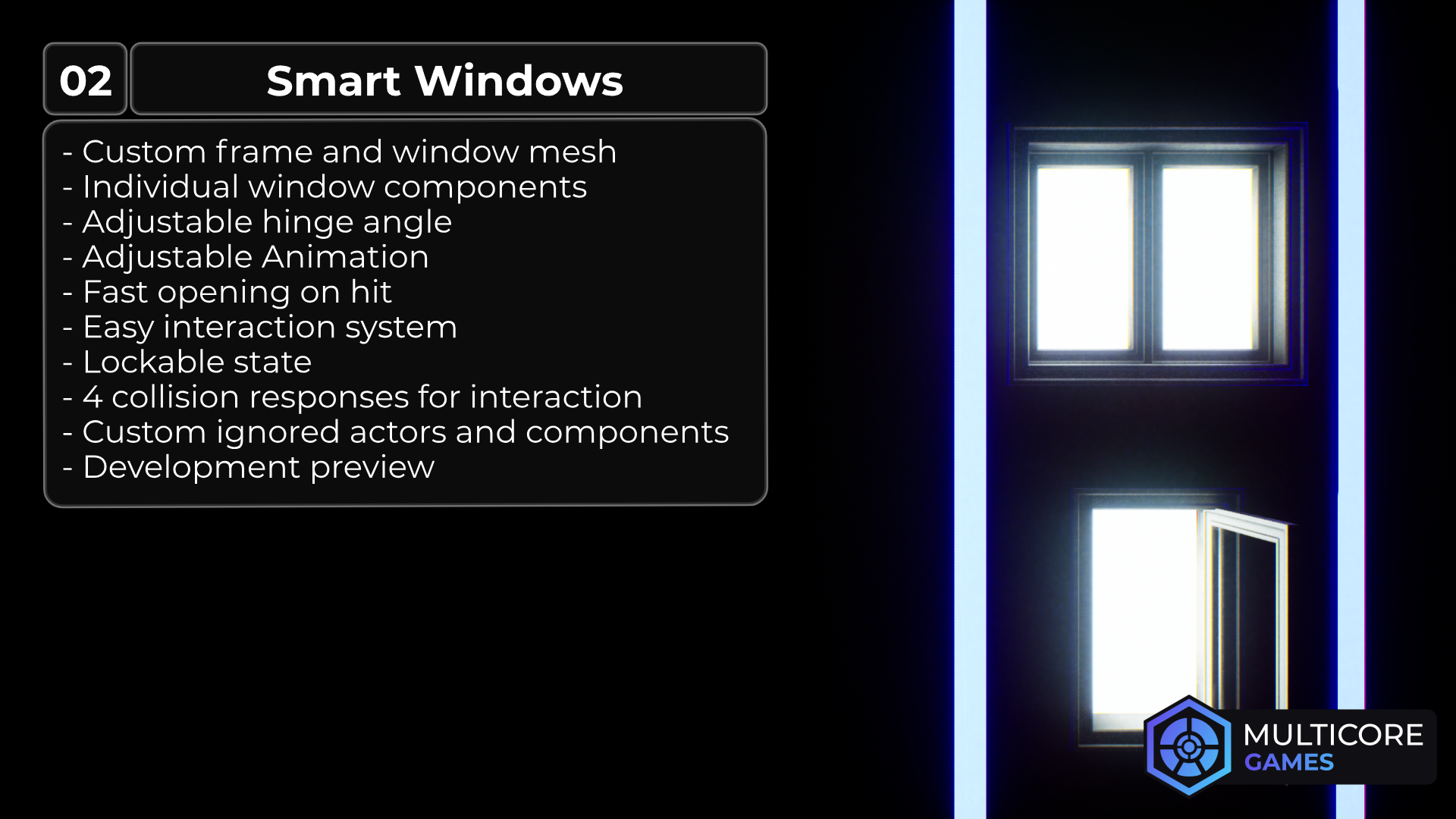 Like the Smart Doors, the windows have individual components and collision, adjustable animations, and an easy interaction system.