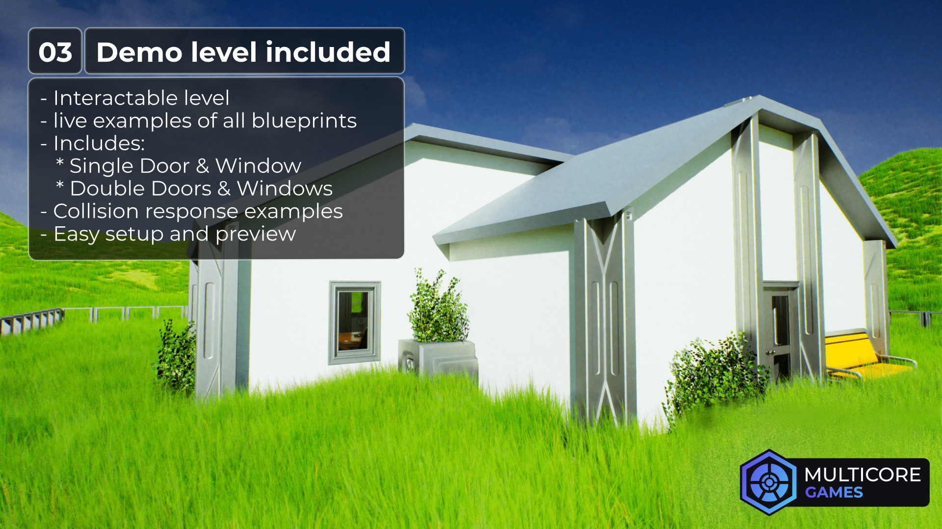 The package also includes 4 collision responses for interaction, allowing you to customize how the doors and windows react to different types of collisions. You can also specify custom ignored actors and components, giving you even more control over how your doors and windows function.